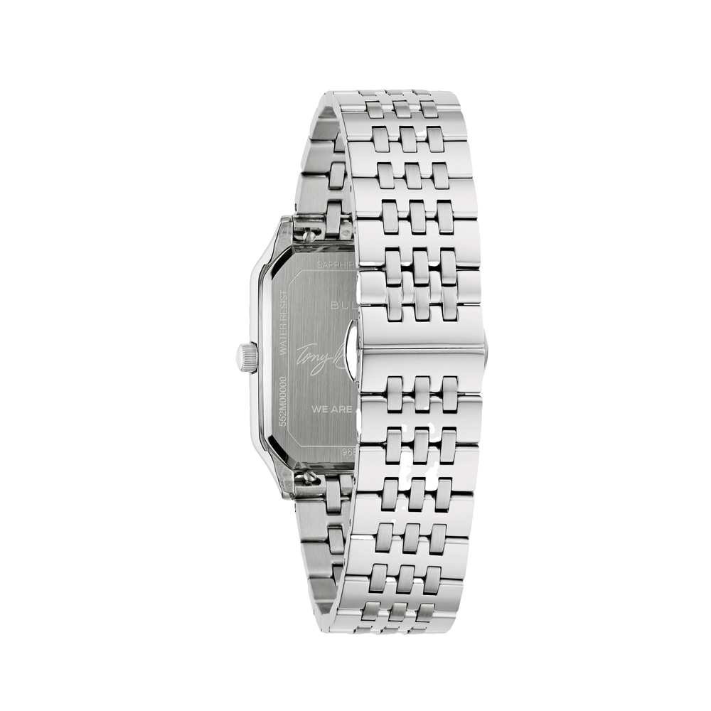 As part of a new partnership with the Tony Bennett Foundation, the “We Are All Here” Duet Bulova men’s timepiece celebrates the timelessness and incomparable talent of the memorable crooner. Taking its inspiration from the classic design of the 1980s, when Bennett staged a roaring comeback, the watch’s silver-tone stainless steel case has a sleek, angular silhouette with polished faceting, paired with a matching stainless steel bracelet. Accented with silver-tone hands and markers, the vertically brushed champagne dial is a study in perfection, with a seconds hand counterbalance shaped like Bennett’s signature folded pocket square. With Tony Bennett’s signature gracing the case back, this Bulova men’s watch pays tribute to one of the greatest performers of all time.
