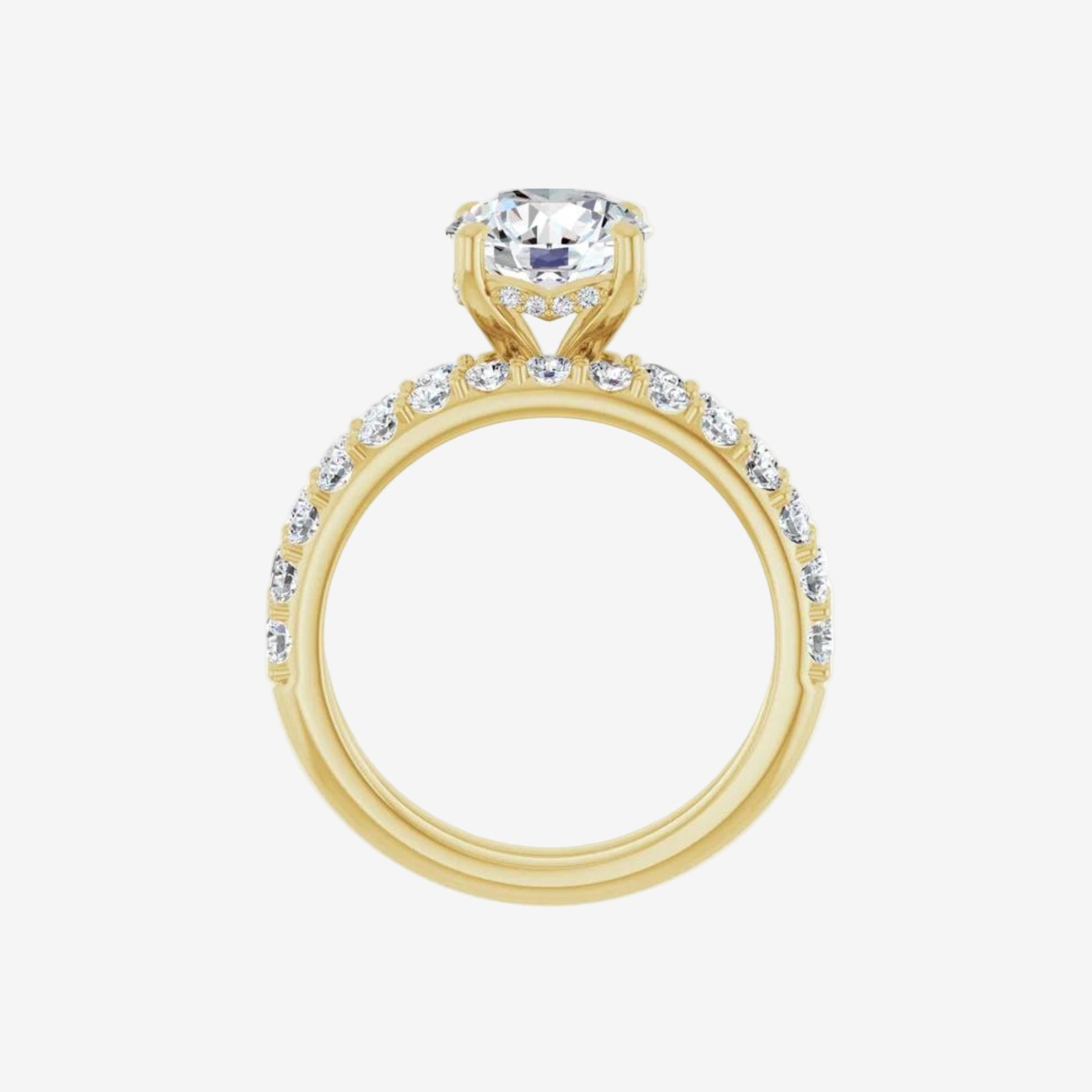 Engagement ring in gold featuring a lab-grown diamond held by four prongs, complemented by delicate side diamonds that enhance the brilliance and elegance of the piece.
