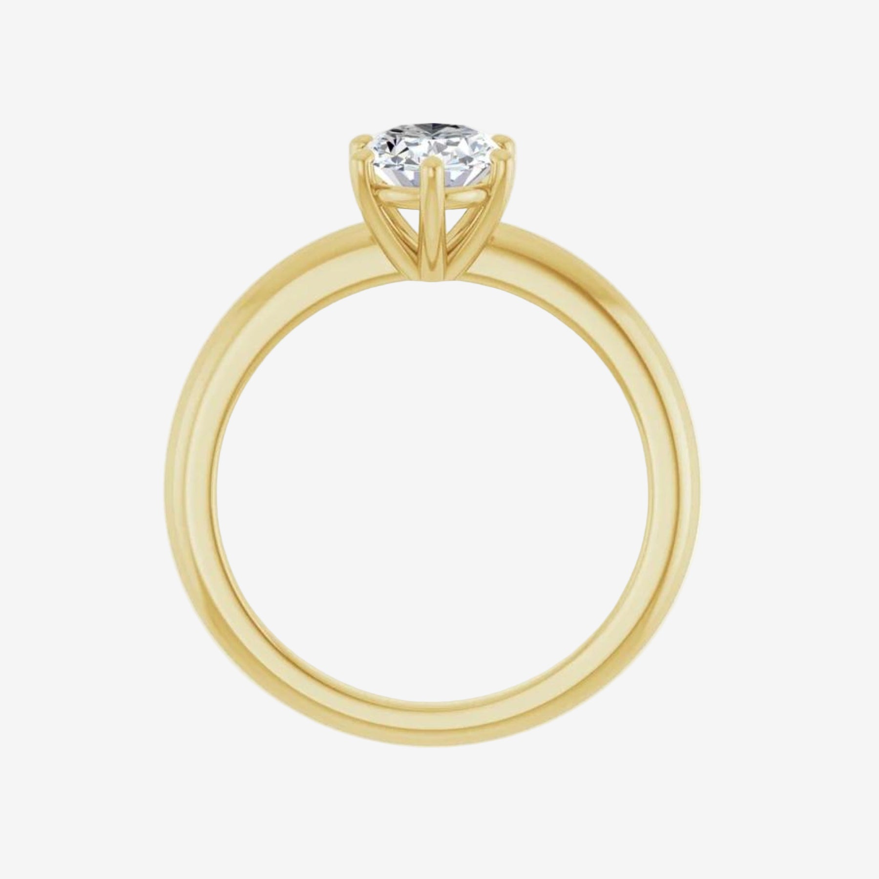 Gold Lab-Grown Diamond Solitaire Ring with Six-Prong Setting. A timeless solitaire ring crafted in solid gold, featuring a brilliant oval lab-grown diamond securely held by six prongs for maximum sparkle and elegance.