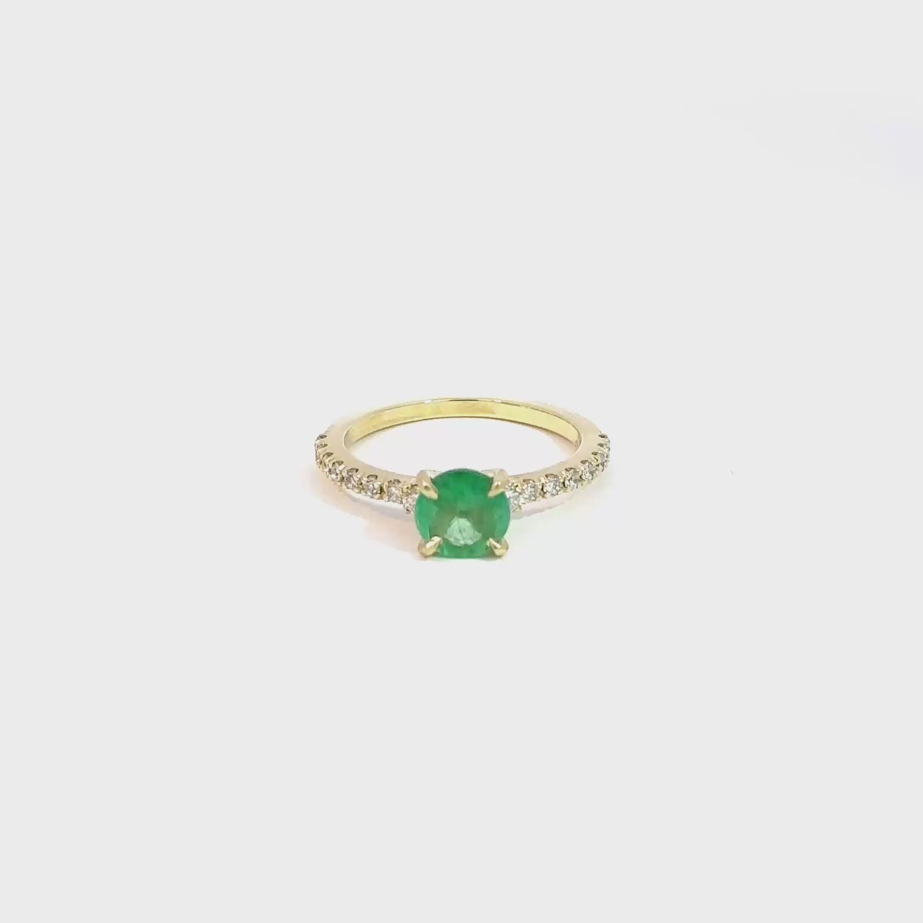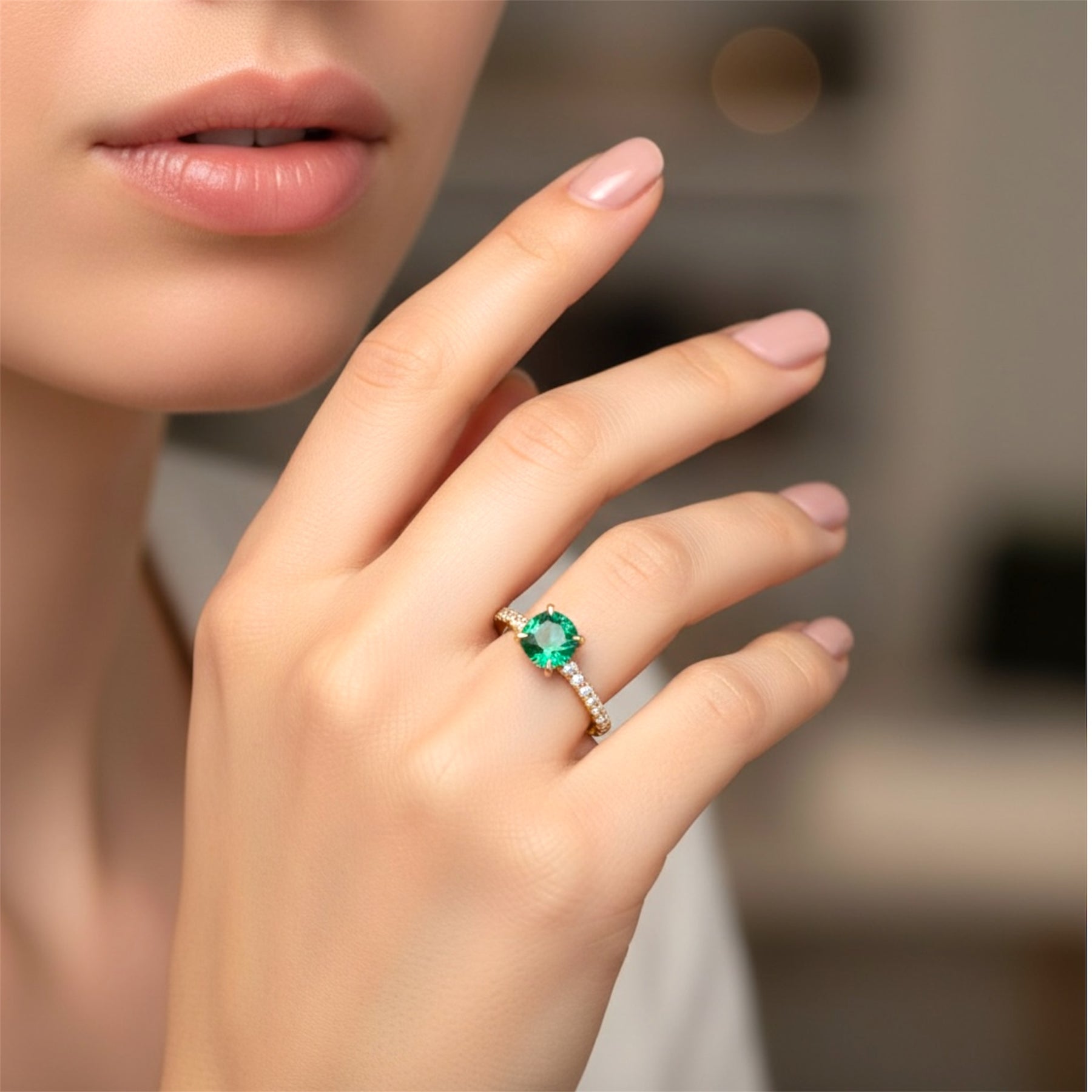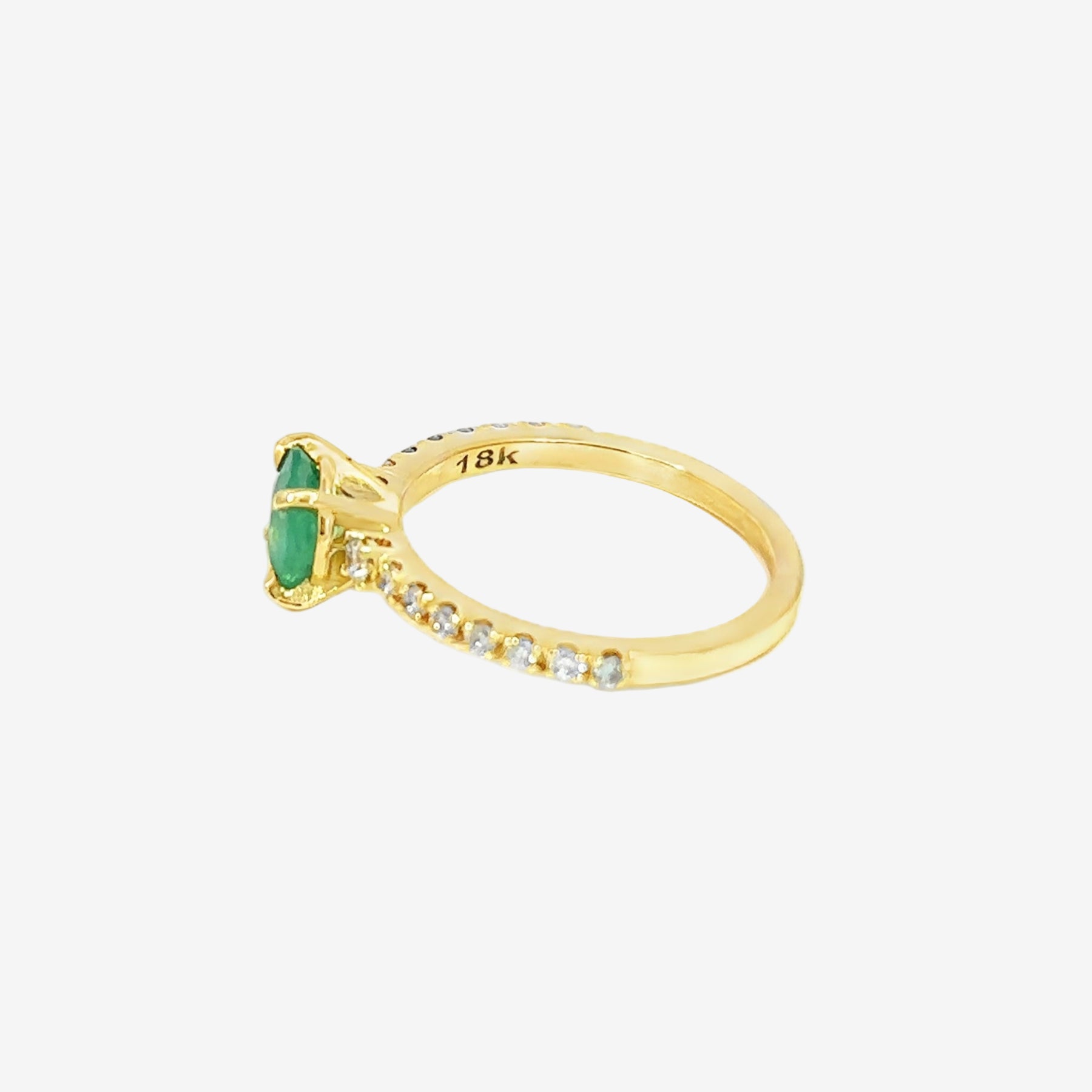 Crafted in radiant yellow gold, the design features a stunning natural emerald, capturing light exceptionally well, complemented by the brilliance of natural diamonds. The intense green hue and purity of the emerald symbolize hope and renewal. A classic and sophisticated jewel, perfect for marking a special moment.